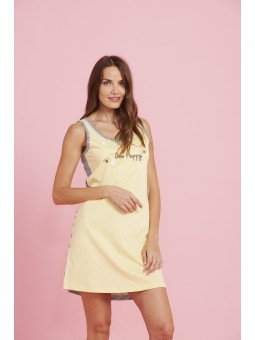 Abitino donna cotone APINA spalla larga giallo con stampa e applicazione e stampa a righe sul retro