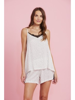 Pigiama donna viscosa elegance con top bretellina dettagli in pizzo sulla scollatura e pantaloncino con triangolo di pizzo laterale