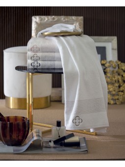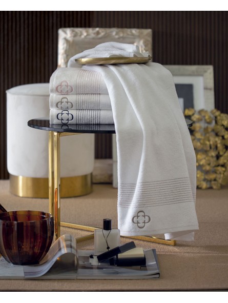 Coppia 1+1 di asciugamani in spugna di cotone idrofilo tinta unita con logo Dondi Home ricamato.