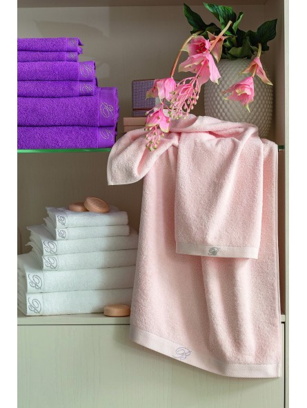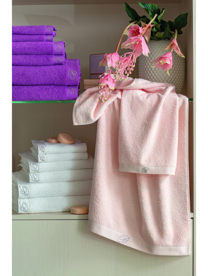 Set da 5 asciugamani in morbida spugna di cotone idrofilo con monogramma Blumarine in cristalli Swarovski.