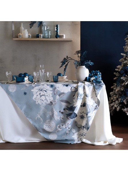 La Tovaglia AntiMacchia Blue Winter è caratterizzata da una festosa fantasia floreale dai toni freddi e invernali. La tovaglia antimacchia è in tessuto Korin, cioè idrorepellente e morbida al tatto. Inoltre, l'orlo è rifinito con un cordino, che assicura la qualità e la durevolezza del prodotto.