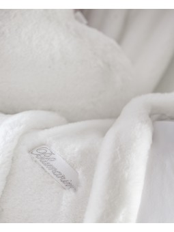 Plaid in ecopelliccia con logo Blumarine in cristalli su nastro gros grain, retro in velluto tinta unita.