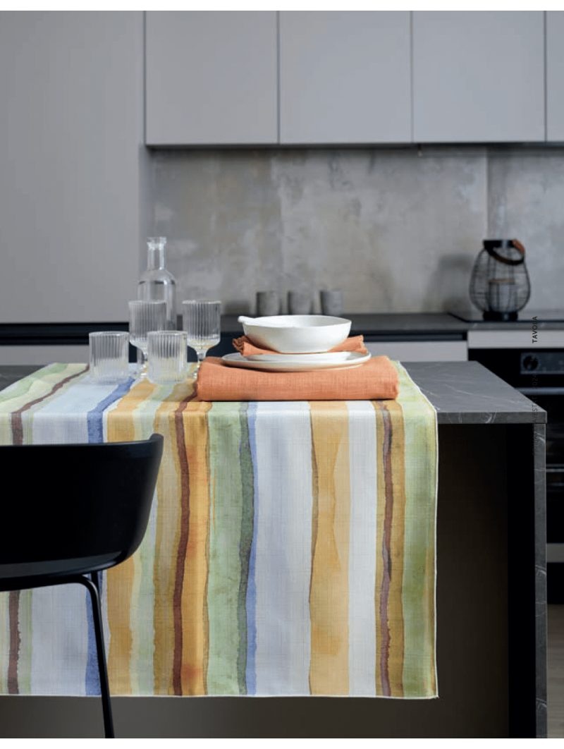 Scegli la misura tra le tante disponibili, anche il runner. Puoi unirci runner o tovaglie Korin tinta unita per coordinati inimitabili.