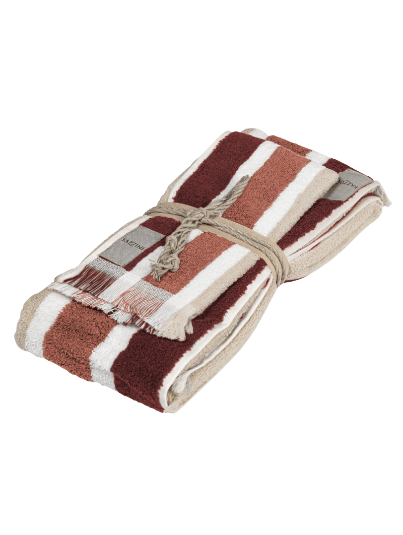 Realizzata in cotone di qualità tinto in filo, la spugna Gradazioni racconta il fascino dell’estate italiana con il suo sempre attuale motivo a righe.