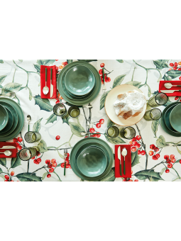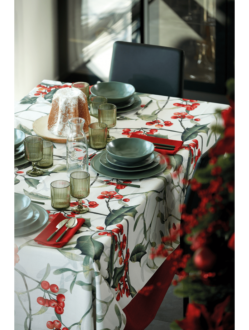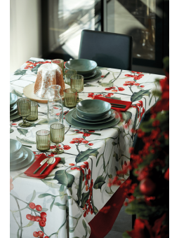 Tovaglia natalizia  in tessuto antimacchia stampato Bosco Selvatico.Made in Italy.