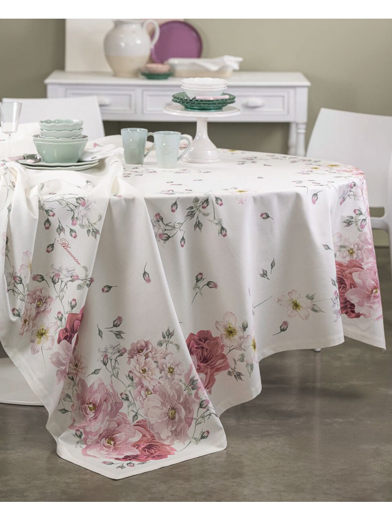 Tovaglia in panama con stampa piazzata per 10/12 posti.