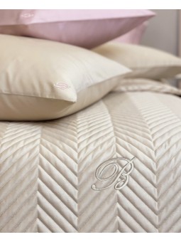 Copriletto matrimoniale trapuntato in percalle di cotone tinta unita, monogramma B ricamato con effetto tridimensionale.