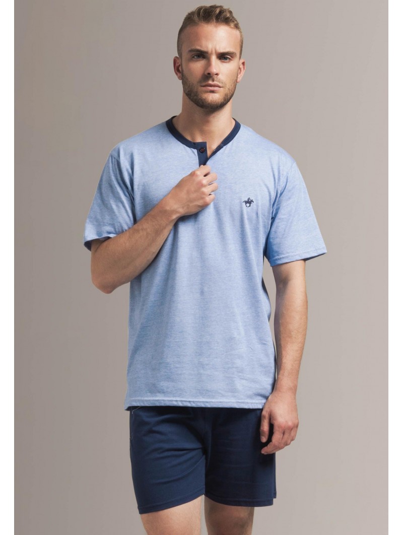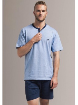 Il nostro pigiama estivo da uomo è realizzato in fresco cotone per garantire una notte di sonno fresca e confortevole. Dotato di pantaloncini corti, questo pigiama è perfetto per le calde serate estive. Il design elegante e la morbida texture del cotone assicurano un comfort superiore. Goditi il relax notturno con il nostro pigiama estivo da uomo.