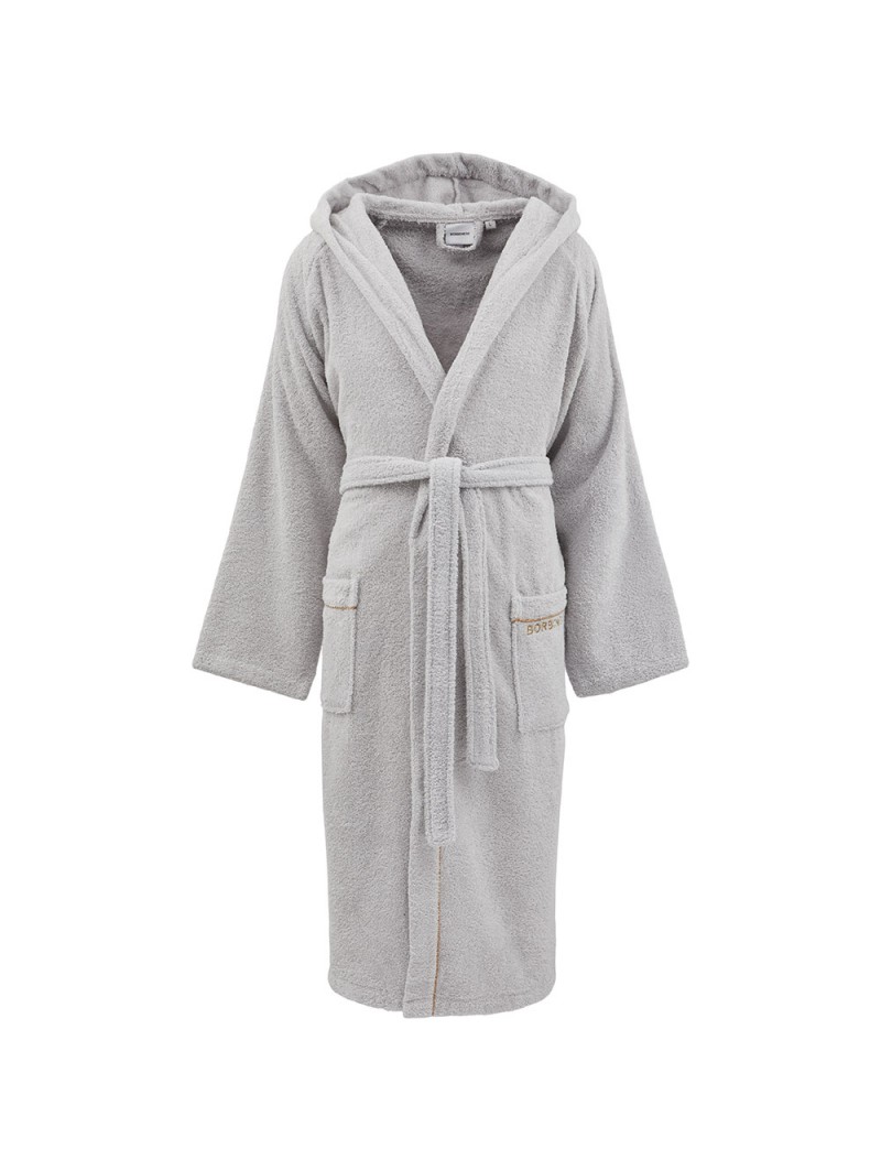 Accappatoio con cappuccio realizzato in spugna 100% cotone da 380 gr/m2. Tasca con logo Borbonese ricamato e codina di topo con il motivo iconico “OP” Occhio di Pernice. Vesti di eleganza la tua casa, con l’esperienza di Tessitura Randi e il design iconico Borbonese.