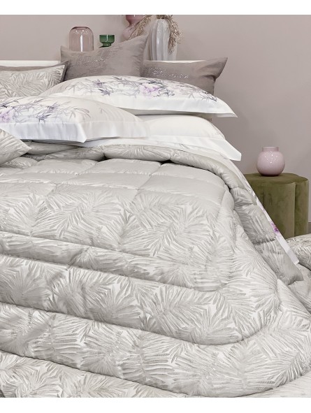 Trapunta matrimoniale in jacquard con logo Blumarine nella trama del tessuto.