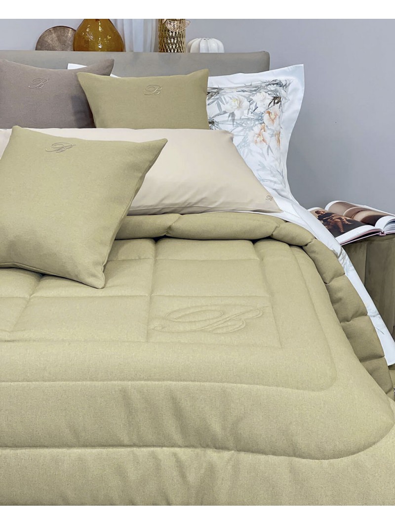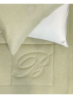 Trapunta matrimoniale in tessuto tinto in filo, logo B realizzato in trapuntatura.
