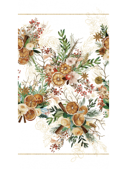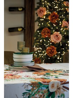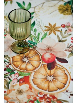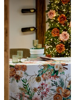 TOVAGLIA NATALIZIA O RUNNER IN TESSUTO ANTIMACCHIA STAMPATO ARANCIA E CANNELLA