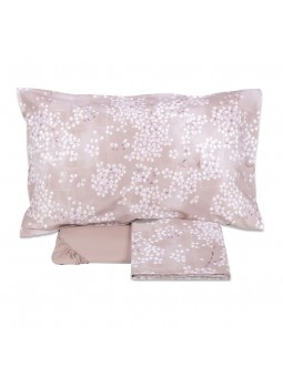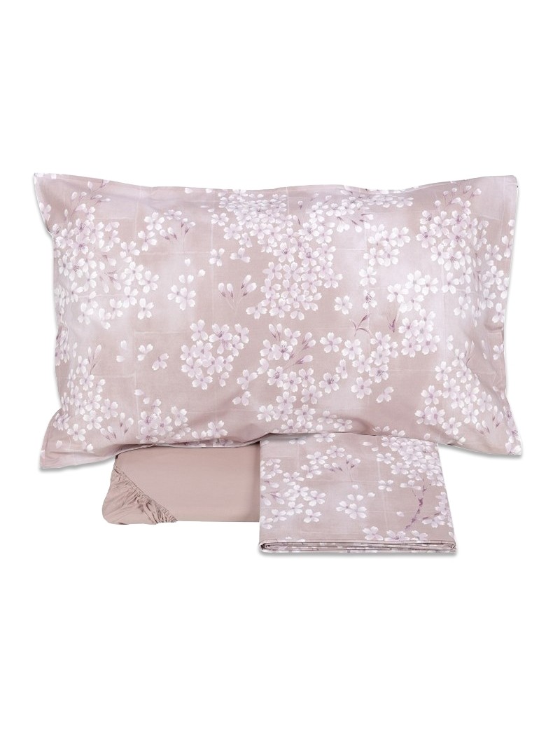 Percalle di puro cotone con sovrastampa in lacca bianca. Il lenzuolo e le federe sono stampati.