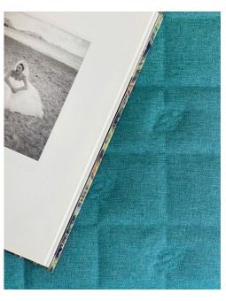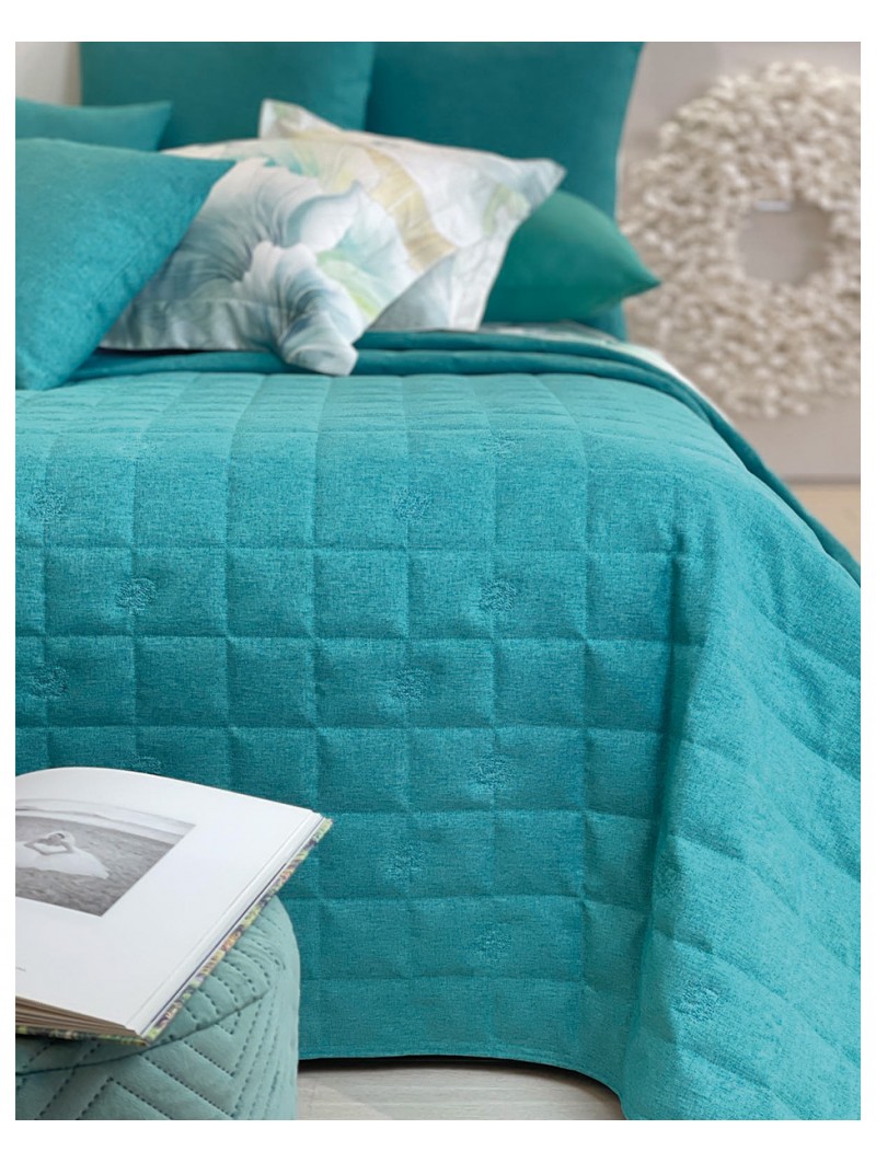 Copriletto matrimoniale trapuntato in tessuto tinto in filo con monogramma B presente nella trapuntatura.