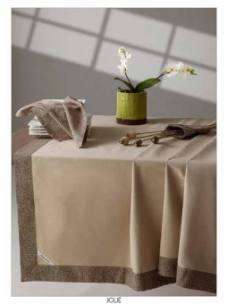 Tovaglia x 12 posti in panama /bordo applicato avorio