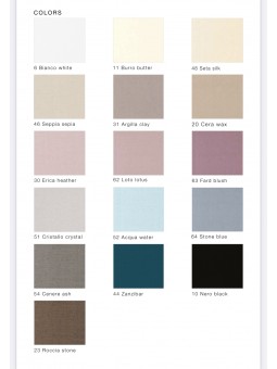 Tantissime varianti colore disponibili, dai delicati toni dei colori cipria e burro, ai più forti dei colori cera, erica e roccia, perfetto per essere coordinato a tutti i nostri copriletto e trapunte.