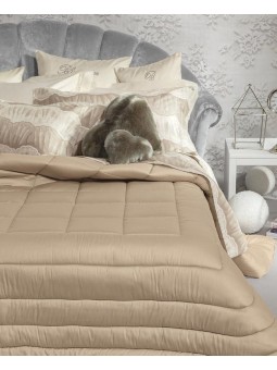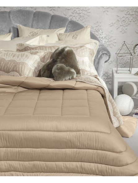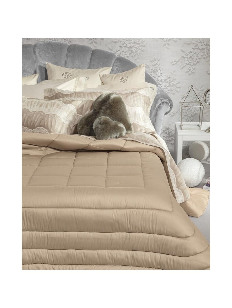 Trapunta matrimoniale trapuntata in puro raso di cotone tinta unita con logo Blumarine in cristalli Swarovski.
