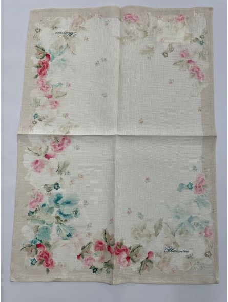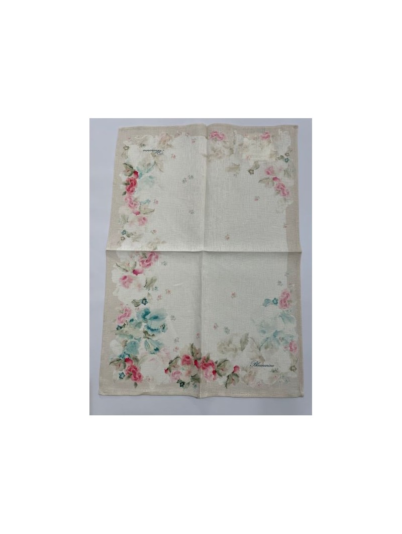 Canovaccio in lino con raffinata stampa piazzata e logo Blumarine stampato nel pattern.