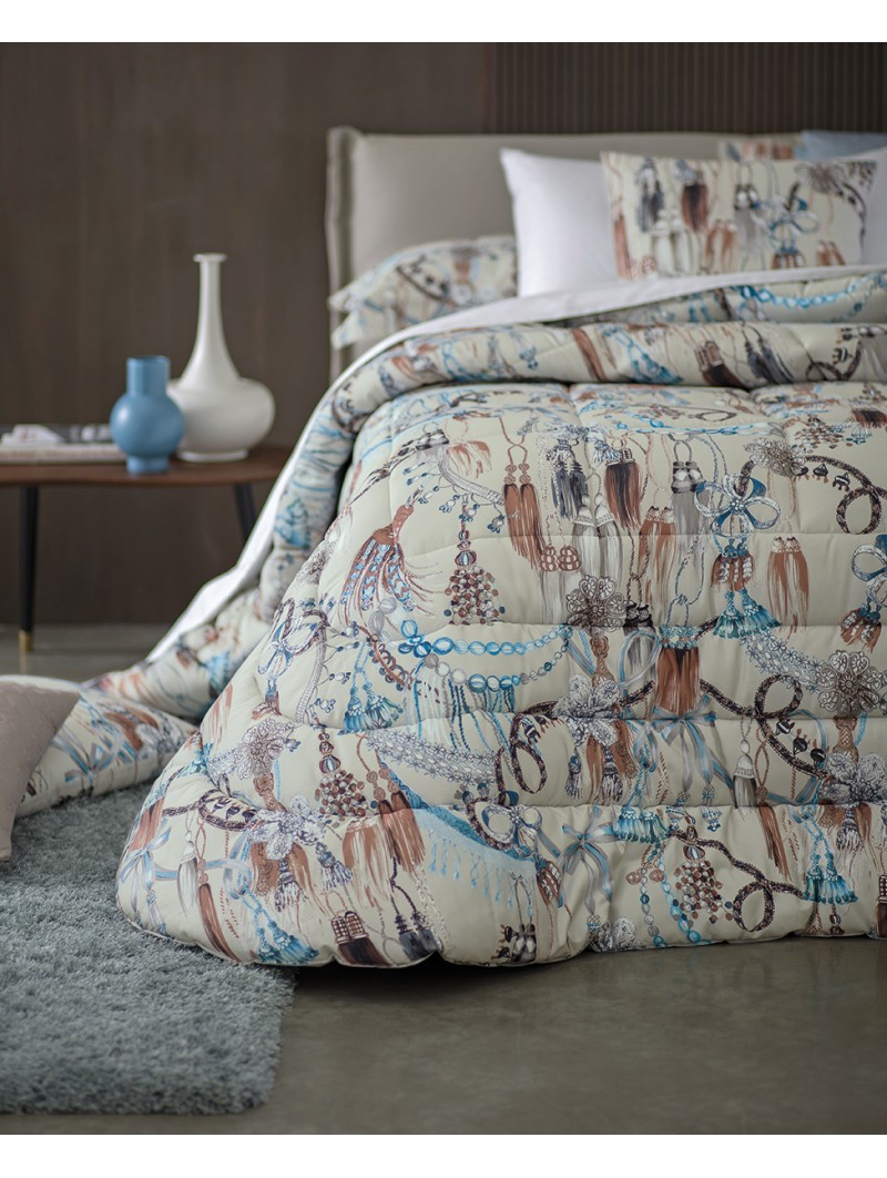 Calda trapunta matrimoniale con disegno stampato all-over.