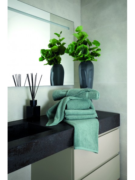 Set asciugamani 1+1 in una nuova e particolare lavorazione della spugna di cotone tinta unita con orlo rifinito Pepe